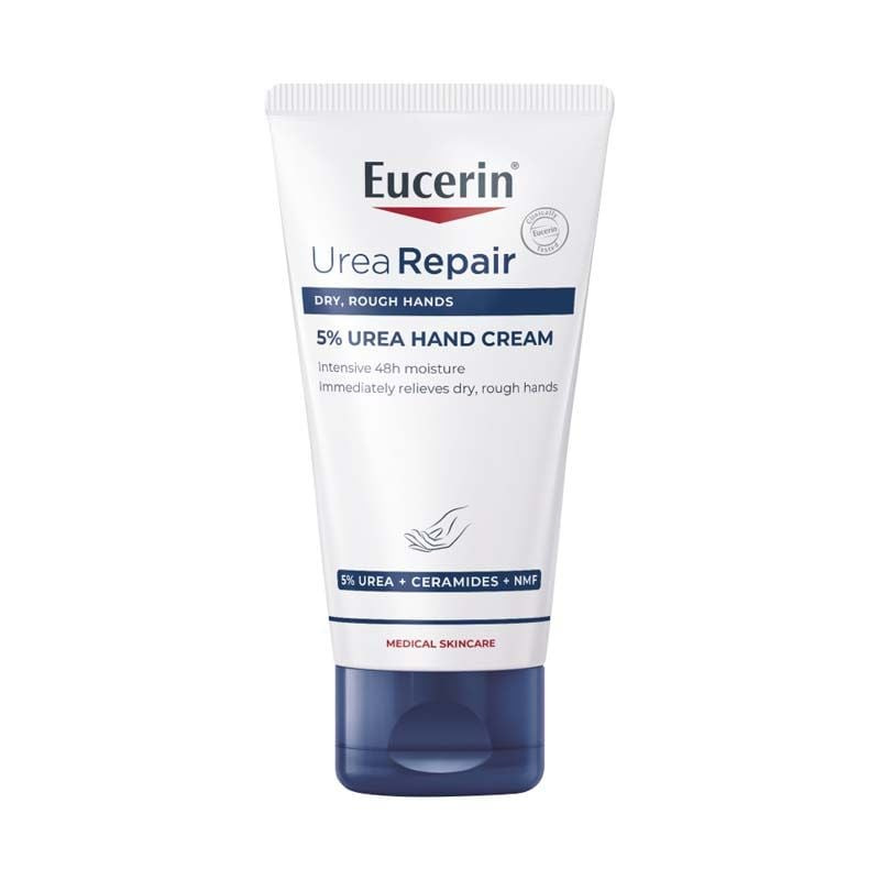 Kezünk testünk többi részénél gyakrabban ki van téve külső környezeti hatásoknak. Gyakori kézmosás miatt gyakran kerül kapcsolatba a csapvíz szárító hatásával, szappannal és más vegyi anyagokkal, illetve fokozottan ki van téve a hőmérséklet változásoknak. A megfelelő barrier funkciók védenek a külső környezeti hatásoktól és a bőr hidratációját fenntartják. Mikor sérül a bőr barrier funkciója, hajlamosabb a károsodásra, s ez nedvességvesztéshez és irritációkeltő anyagok behatolásához vezethet, aminek a következménye a bőrszárazság, a kipirosodás, a pikkelyesedés, a viszketés és az irritáció. A Eucerin Urea Repair 5% Urea kézkrém ureát, ceramidot és más természetes hidratáló faktorokat (NMF) tartalmaz.