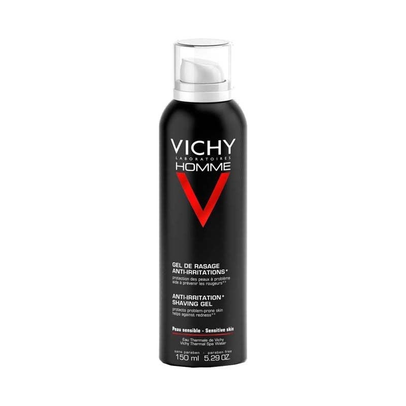 Irritációmentes borotvagél. Vichy borotvagél érzékeny vagy problémás bőrű férfiak számára, akik a borotválkozás által okozott vörösséget és irritációt szeretnék megelőzni.